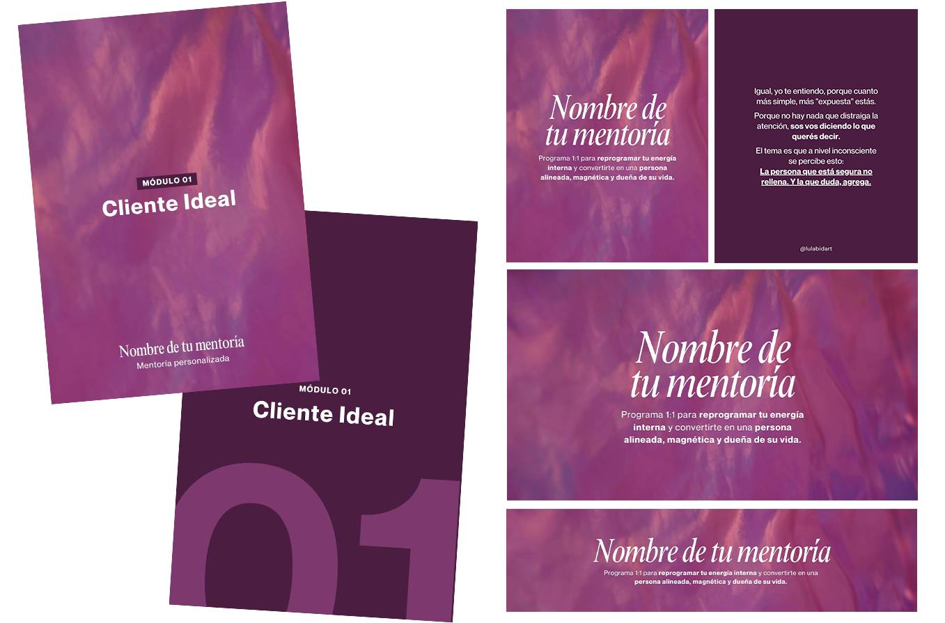 Este es un curso práctico para crear una experiencia visual coherente en mentorías, servicios 1:1 y programas personalizados, usando un único diseño que se adapta a todos los puntos de contacto.